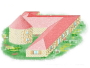 | Modeste maison familiale sur un niveau et disposée dans un petit jardin.